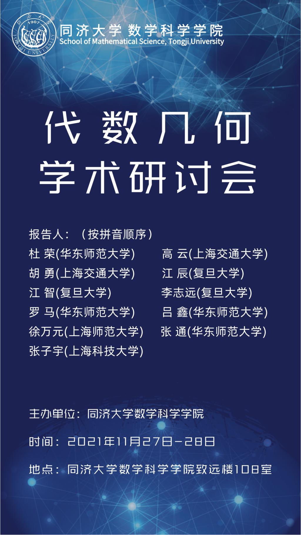 2021年a漫 “代数几何学术研讨会”将于2021年11月27日至28日在中国上海a漫 召开。本次会议诚邀国内代数几何优秀青年学者参会交流,旨在探讨代数几何研究的最新进展,促进国内同行之间的交流与合作,增进友谊。本次学术研讨会由a漫 主办。