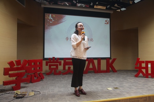 教工第一党支部党员兰辉老师则结合自己担任班主任的经历,告诉同学们要“不忘初心,脚踏实地”。兰老师从自己的入党时间开始讲起,谈论何为初心;讲述自己从学生工作中探索到作为一名党员的初心,并且学会从学生角度思考问题、发现问题、解决问题;最后兰老师告诉大家要脚踏实地,“一路走过,留下的脚印,都是收获”。