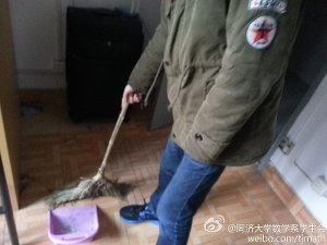 今天下午,黄芝轩同学在寝室帮舍友打扫卫生,他放弃了周末玩耍和休息的时间,让舍友在这寒冷的冬日感受到一丝温暖。他真是学雷锋的好榜样!