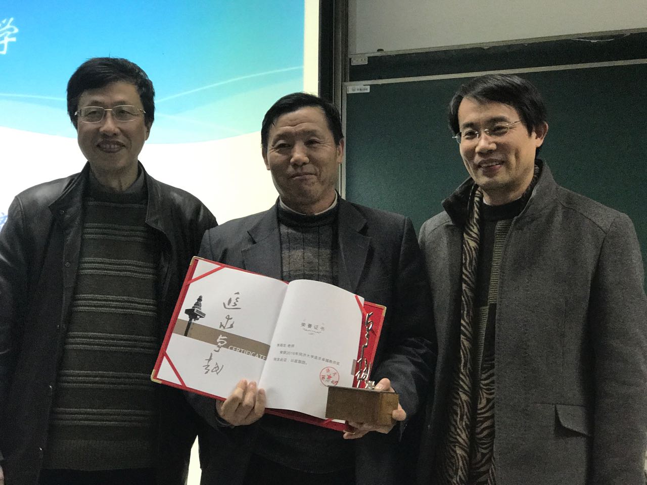 工作汇报后,在学院年度考核中被推荐为优秀的七位老师分别就各自的工作进行了年度成果汇报。经过全院教职工无记名投票,李雨生、苏育才、余斌三位老师荣获“2016年度a漫 优秀科研奖”、李莉娜老师荣获“2016年度a漫 优秀教学奖”、郝朝洋老师荣获“2016年度a漫 优秀管理奖”。