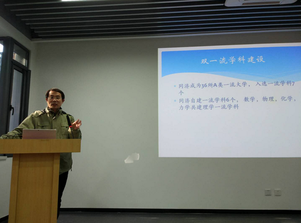 院长许学军教授对一年来学院在学科建设、人才梯队、教学培养、学生工作等方面取得的成绩进行了总结。他指出,学院在这一年中,数学与物理、化学、力学共建理学,跻身同济一流学科之列;在最近公布的教育部第四轮学科评估中,跃升A类学科,在182个参评单位中位居前10%;一年间引进和入选了国家级人才4人;举办了国际青年学者论坛数学分论坛以及其他国际学术会议,大力推动国际合作与交流;教学工作成效斐然,学生工作异彩纷呈。