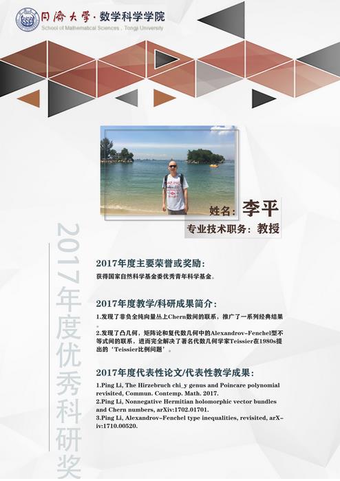 优秀教学奖”,另有今年入选优青的李平老师也荣获优秀科研奖。