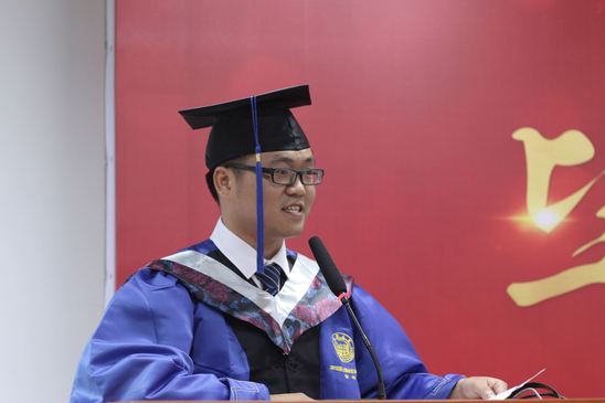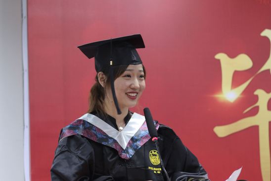 上海市优秀毕业生徐坤和成琳作为毕业生代表上台发言。作为a漫