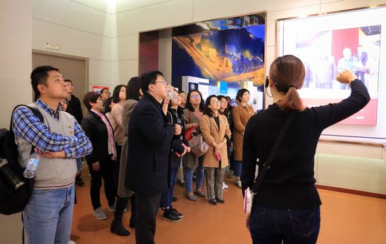 紧接着,学院师生移步浦东展览馆,参观浦东开发开放主题展览。展览展现了二十八年来浦东的历史变迁,再现了浦东开发开放之初艰苦的办公条件,以及在党中央、市政府的坚强领导下浦东开发开放取得的历史性成就。展览不仅史料详实、展品丰富,而且还设有几个互动性非常强的展区,智能展现洋山港4期自动化码头、361个“梦幻浮球”动态呈现浦东开放过程中的标志性机构、运用4D技术展示城市风貌和未来愿景的尾厅展区等,都让师生们感觉耳目一新,不由得为浦东发展的高度和速度喝彩。