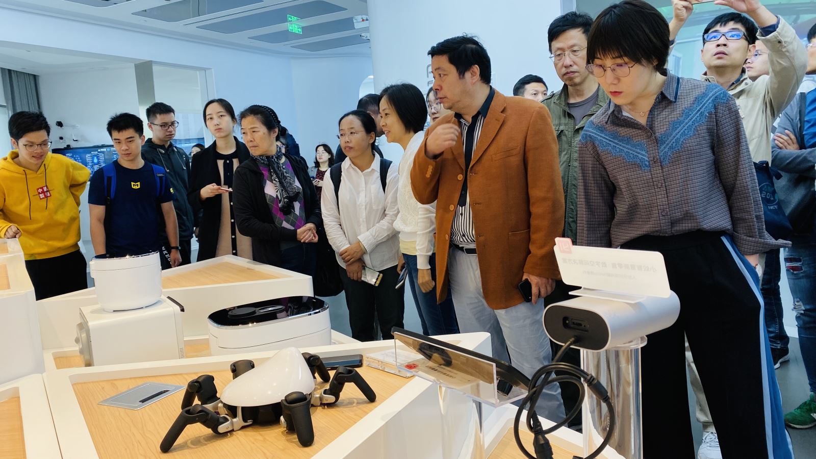 刚一下车,同行的师生就感受到智慧生活的气息。在张江人工智能岛AI体验中心大门口,一辆小小的巡逻车正在执勤,那是安防机器人;人工智能岛的上空,有无人机在巡检,河里有无人船和水下机器人在监测水质;除此之外,装有智能传感器的智慧消防、绿植灌溉、智慧路灯、智慧井盖和智能垃圾箱都在各司其职,师生们不禁感慨:“这是提前感受20年后的日常生活啊!”