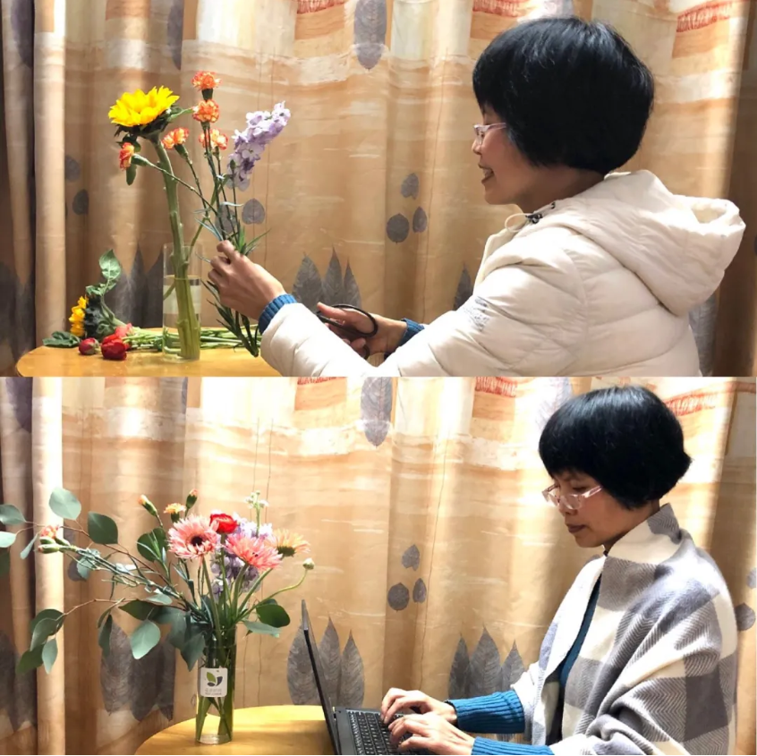 3月8日国际妇女节来临之际,学院工会发起了“最美,我的直播教室”活动,助力女教师开展居家教学,打造完美的直播空间。学院工会为报名参加的女教师购买鲜花,老师们DIY完成插花作品,并拍照提交,说出主播幕后的故事。