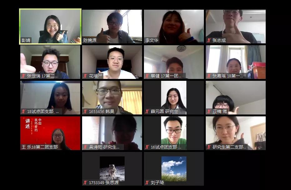活动的第一部分,全体参会成员共同学习习近平总书记给北京大学援鄂医疗队全体“90后”党员的重要回信精神,并结合个人情况,分享自己在学习和生活中弘扬五四精神,勇担时代责任的经历和感想。研究生第一团支部书记薛元圆表示,新时代青年要牢记总书记嘱托,以总书记的勉励为动力,努力成为有理想、有本领、有担当的新时代青年。2017第一团支部书记蔡健表示,作为一名团支书,要以五四精神激励自己,学习上做好表率作用,利用自身优势给大家提供学习上的帮助。2016第一团支部书记韩昊表示要做有理想、有本领、有担当的新时代青年。2018第二团支部书记王乐表示,要以奋斗在疫情防控各条战线上的青年为榜样,切实担负起历史使命。