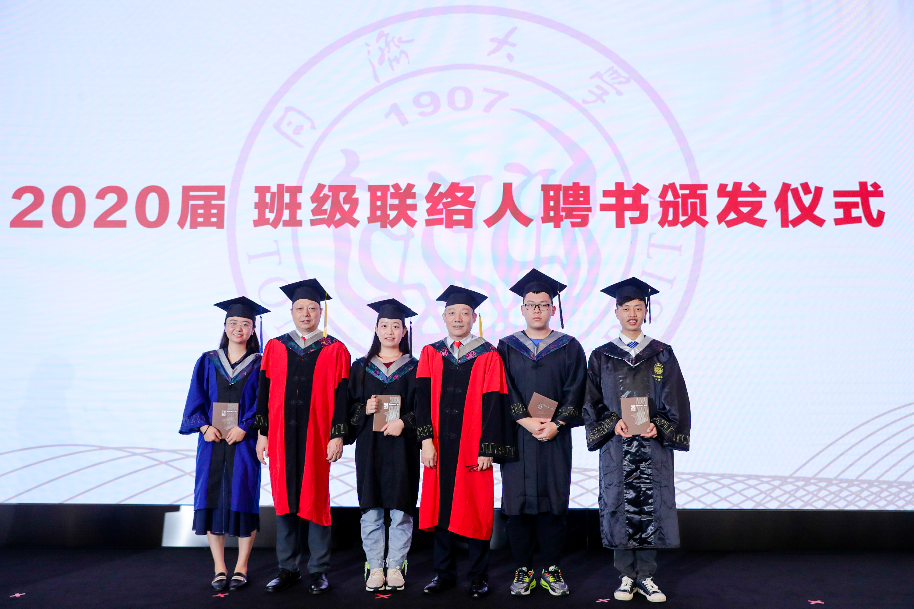 典礼上,学院副院长潘生亮、梁汉营分别为毕业班班级联络人颁发了聘书为新一批的同济数院校友献上母校的祝福。