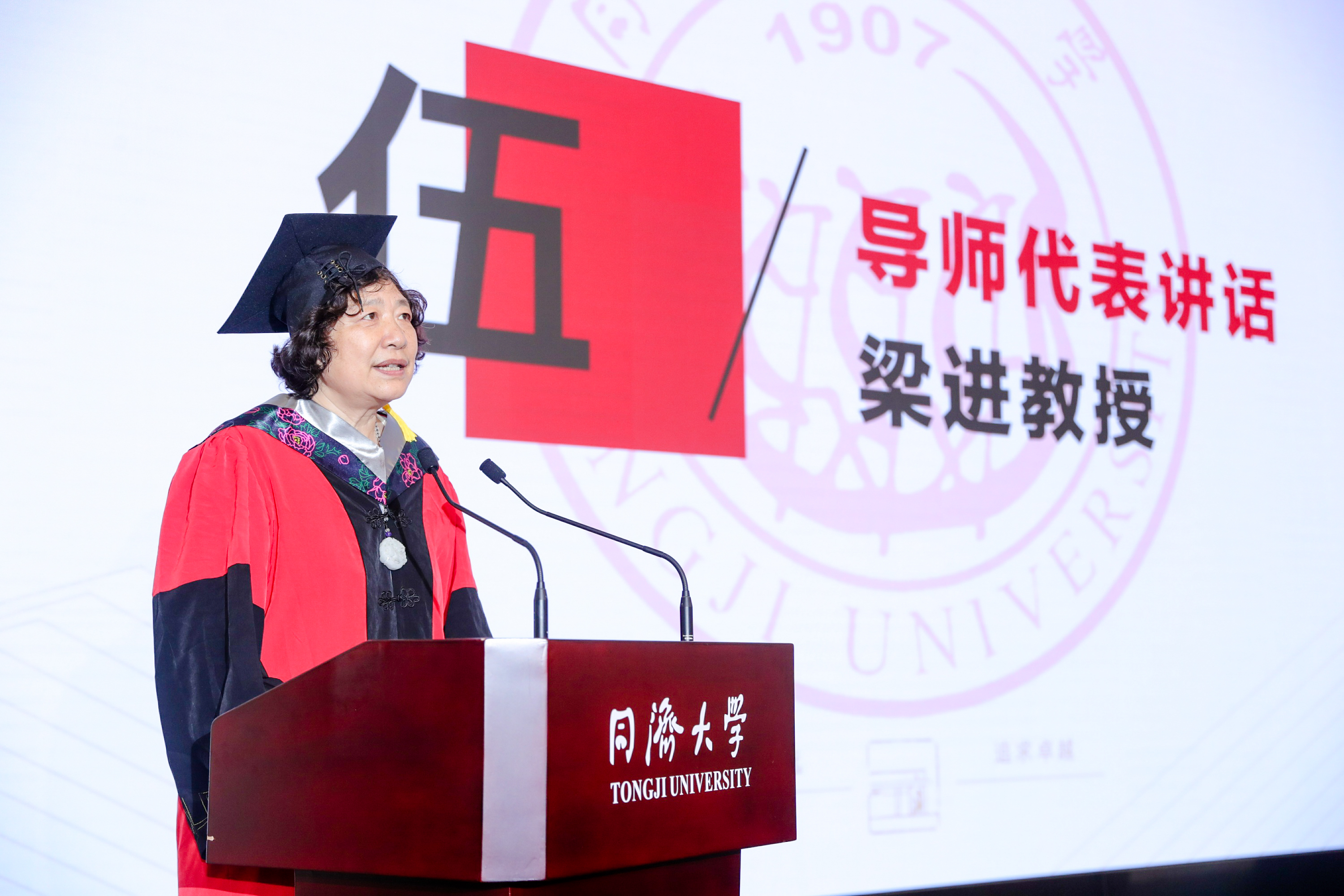 教师代表梁进教授以《毕业歌》中一句:“今天是桃李芬芳,明天是社会的栋梁”,表达了对同学们承担社会责任的殷切期盼,同时对同济数学人提出了更高的要求,同学们不仅要以同济为荣,今后更要为同济增光。班主任代表李灵光老师回忆了四年来和同学们相识相知的过程,回顾了五个最难忘的时刻,能够见证同学们取得如此多的成绩和荣誉,班主任老师感到由衷的欣慰。