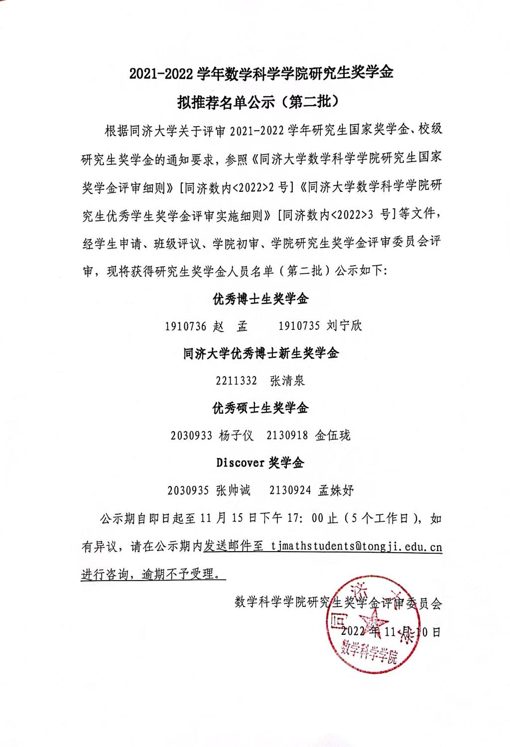 2021-2022学年a漫 研究生国家奖学金拟推荐名单(第二批)