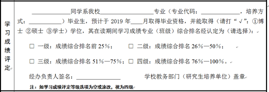 (二)学院教务办经办人根据成绩等级评定结果勾选成绩等级、签字并在经办负责人签名处加盖学院公章;