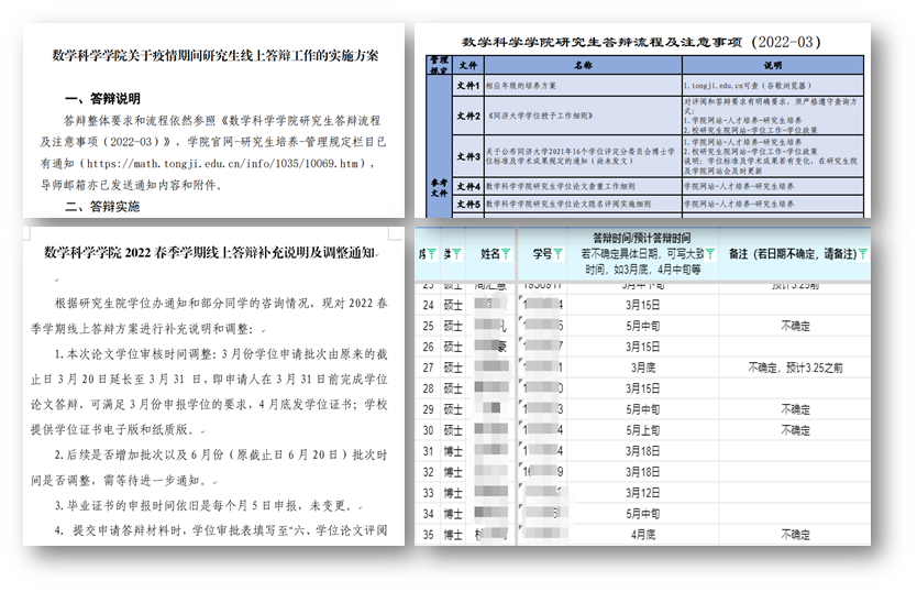 关于疫情期间研究生线上答辩工作的实施方案》,又在学校下达具体指令后进行了补充通知,知学生所忧、想学生所盼,信息的传递和解答透明又快捷,有效抚慰了同学们焦虑紧张的情绪。