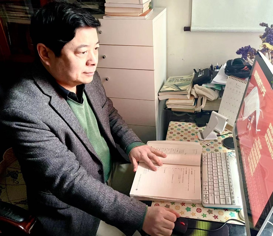(图:教工第二党支部钱志坚老师在线授课中)