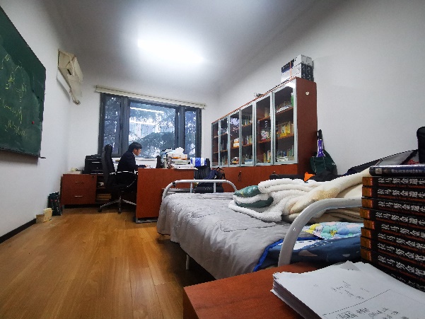 3月9日学校紧急实施封闭管理,近四十位教职工滞留学院各个楼宇。大家一时间没有什么准备,需要紧急调配物资,安排好老师们的临时住宿。教工支部党员、院办主任廖洒丽老师,作为大家眼中的“大管家”火速联系后勤部门,准备好了四十套洗漱用品,拿出库存的行军床,协调暂时空置的办公室,供老师们夜间休息,从了解和排摸老师们的需求到供给到位,她一直忙活到深夜。