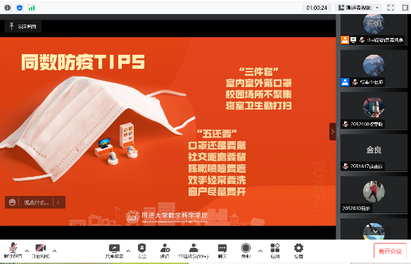 (图:数学老师在线课堂上的防疫小贴士及主题背景)