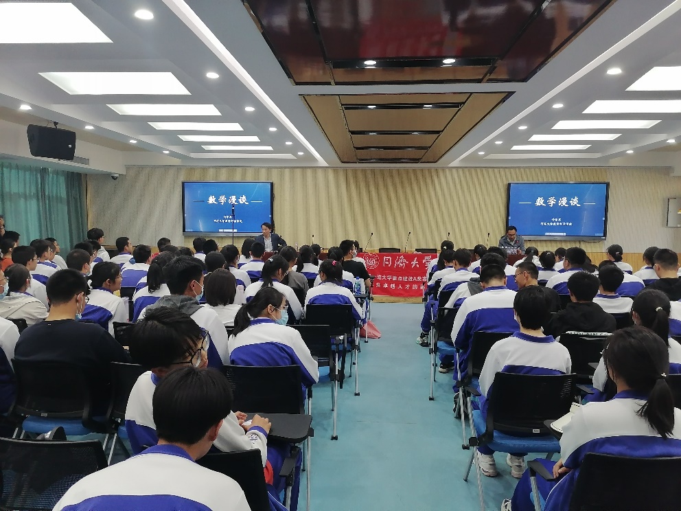 数学学科的发展情况和人才培养模式,并通过丰富生动的实例向同学们展示了数学之用和数学之美,让大家深刻地感受到了数学的无穷魅力,激发了同学们对数学学科的兴趣和热情,启发了同学们的数学思维和创造力。