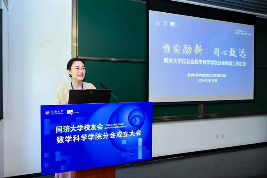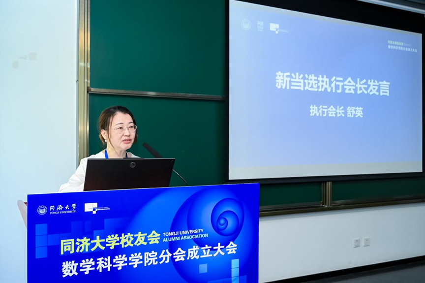 分会第一届理事会新当选执行会长舒英女士上台发言,她对大力支持本届校友会的成立的各位校友、领导和老师表示衷心的感谢。舒英女士指出,在各位校友的共同努力下,要将校友分会建设成为促进交流、分享资源、相互支持的平台,让每一位校友都能感受到独属于同济人的温暖和力量。同时,校友会还将致力于策划实施各种形式的校友活动,增强校友联系,推动校友与学院的深度合作,为学院的发展贡献智慧和力量。