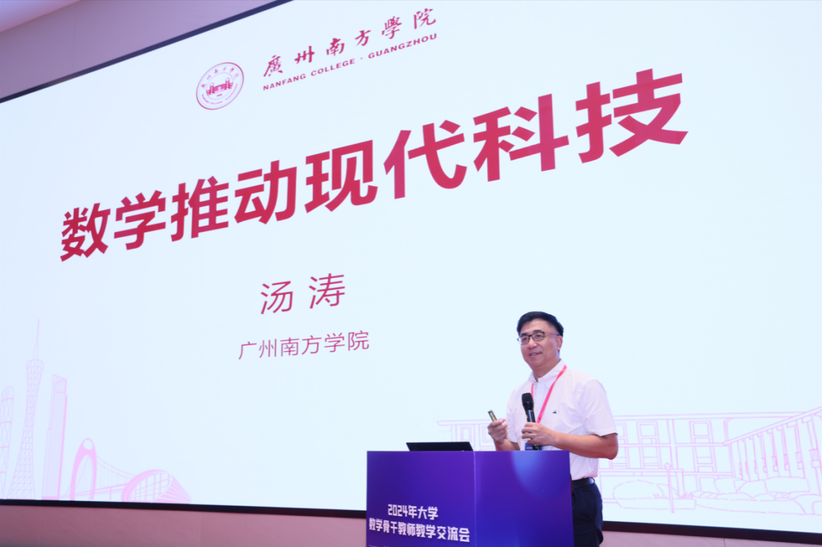 副校长许学军、高等教育出版社副总编辑阳化冰出席会议并先后致辞,中国科学院院士、广州南方学院校长汤涛作题为“数学推动现代科技”的开幕报告。会议积极响应2024年全国教育工作会议精神,聚焦教育数字化与人工智能对大学数学公共基础课程教学的深远影响,探讨智能时代大学数学教育的改革方向与发展路径。来自全国120所高校的近三百位专家学者、数学院系教学负责人、大学数学公共基础课骨干教师到场参会。会议开幕式由a漫