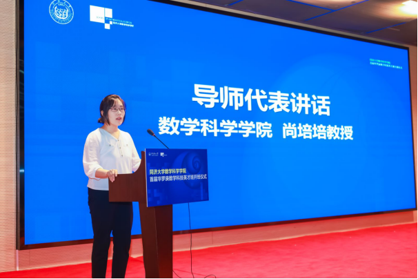 导师代表尚培培教授鼓励同学们要树立成为数学家的远大志向,努力探索数学奥妙。她引用了数学家杨武之先生的观点,希望大家在数学学习过程中做到“大致疏通、局部精通、融会贯通”,迅速从高中数学向大学数学的学习做转变,抓住学习的主动权,合理规划大学生活,在打好基础的前提下,尽早地进入科研训练,在博大精深的数学王国里尽情遨游,探索数学的奥妙,欣赏它特有的美感,并努力为之添砖加瓦。