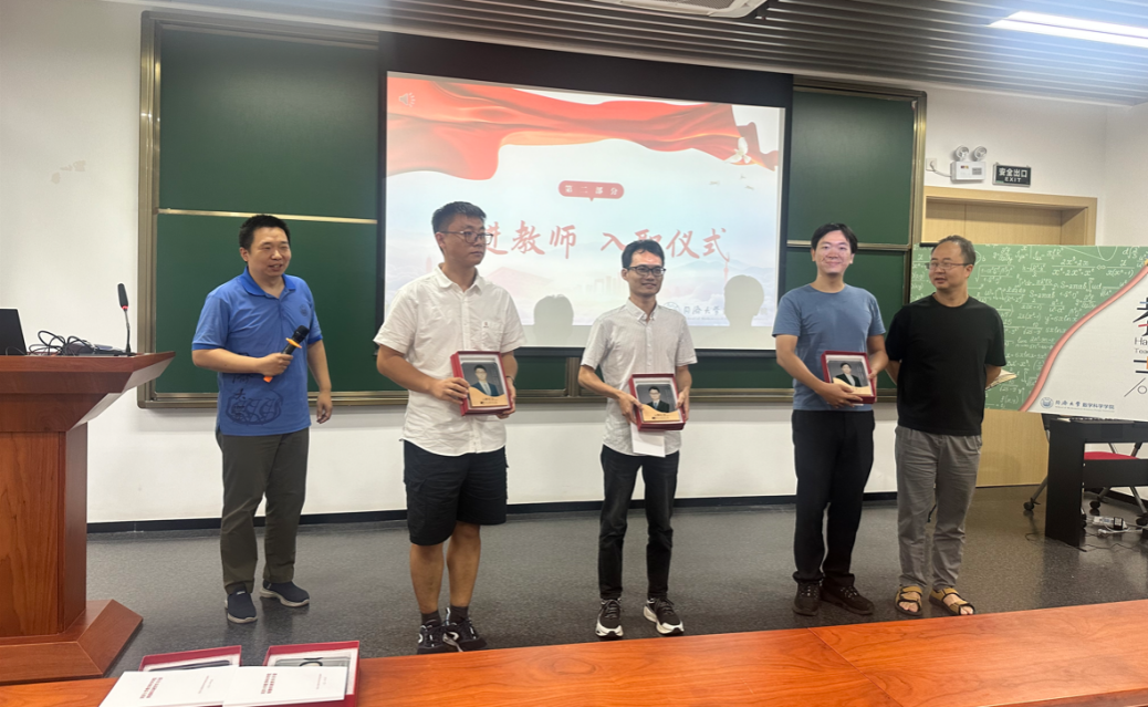 学院的发展离不开一代代教师的薪火相传、接续奋斗。活动接着进行新进教师入职仪式。在热烈的掌声中,各教研室主任为新进教师送上入职纪念品及《师德师风手册》,教研室主任依次发言,表达对新进教师的热烈欢迎,并鼓励他们充分发挥自身的专业能力为学院建设和人才培养贡献力量。每位新进教师都分享了自己的入职感言,表示将秉承学院的优良传统,牢记育人初心和使命,恪守师德师风,满怀热情地投身于教育事业,不断提升教育教学水平,当好学生成长路上的引路人,同时扎实做好科学研究工作,为学院的发展添砖加瓦。