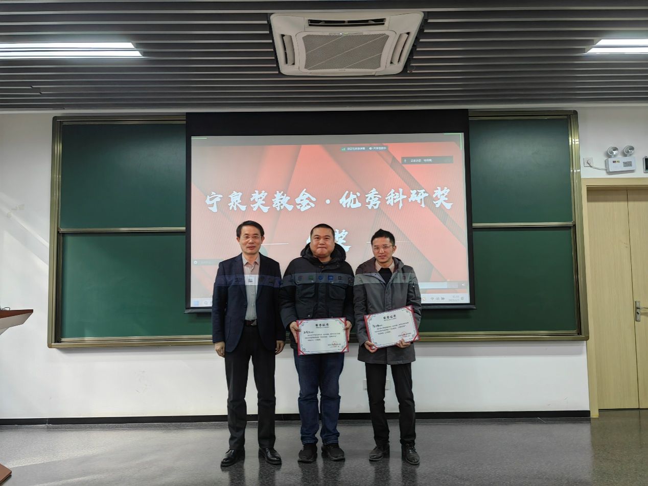 许学军副校长为“宁泉”奖教金获奖者颁发证书。李忠华副院长和余斌副院长为省部级及以上获奖教师颁奖纪念证书。