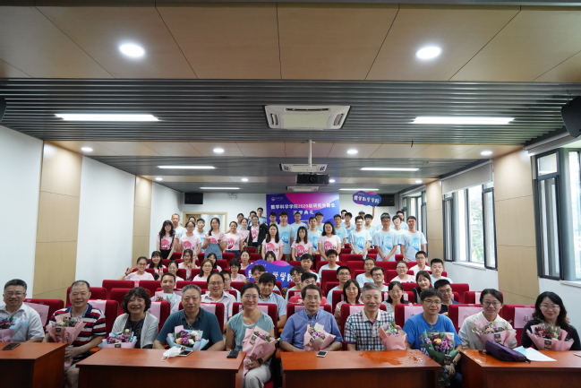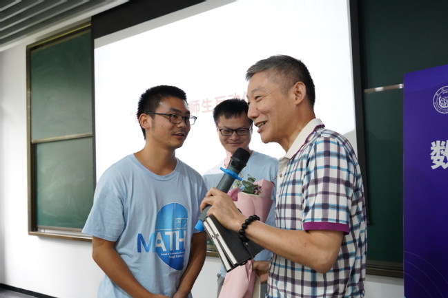 李忠华教授作为导师代表发言,通过回顾自己的研究道路,告诉大家做研究要懂得自律、自信、自强,同时还要恪守学术道德,做到问心无愧。申丽娟老师作为班主任代表发言,她向同学们介绍了如何与导师更好地相处,顺利地推进自己的研究工作。她希望同学们能够从多个角度考虑问题,积极融入数院大家庭。老生代表李文华、新生代表梁毅同学也分别分享了心得与体会,激励大家一起探索瑰丽的数学宝藏。
