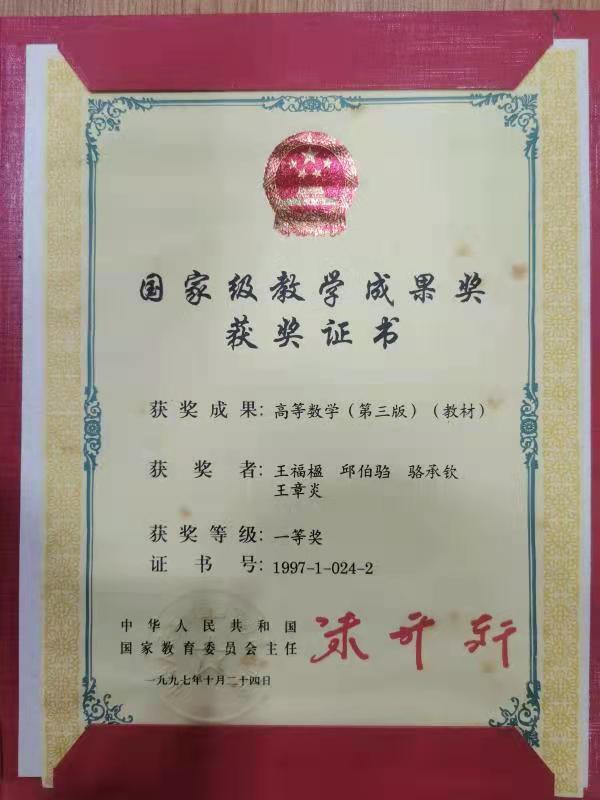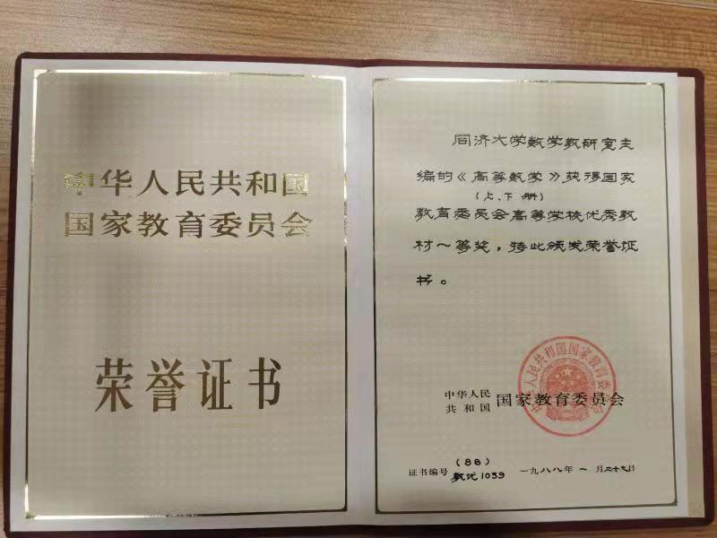 编写的《高等数学》第七版(上册、下册),荣获“全国优秀教材特等奖”(全国共10项,其中高等教育类4项)。