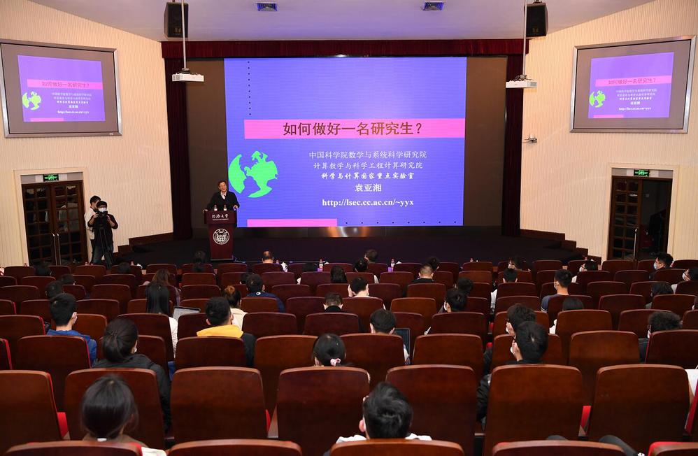 院长许学军、党委书记李静茹及200多名师生与会聆听。袁亚湘以“如何做好一名研究生”为题做了精彩的报告。他从“为什么要做好一名研究生”“研究生和大学生的区别”“研究生要做什么”这三个问题出发,结合个人学术生涯和多年的研究生培养经验,深入浅出地解读了研究生要面对的主要矛盾、需要克服的实际困难。在一个多小时的讲座中,袁亚湘旁征博引,通过大家名师的典型案例向大家讲解了思考、兴趣和努力对于做学问的重要性;他还和大家讨论了如何提高自己的科研能力,强调了业余生活和身体健康同样是研究生生活中的重中之重,并对在座学子的研究生生活给予了美好的祝福。讲堂现场气氛热烈,不时响起阵阵掌声。在场的研究生代表纷纷表示,听大师一席话定会终身受益。徐建平向袁亚湘赠送了同济高等讲堂证书,讲座在热烈的掌声中落下帷幕。