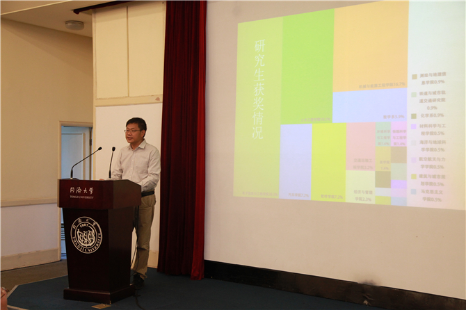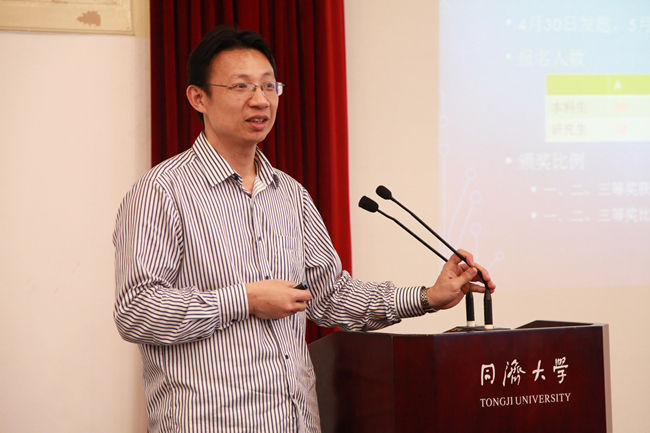 会上,数学系系主任边保军教授从竞赛的宣传组织、培训、论文评阅等方面介绍了今年数学建模竞赛的工作。边保军教授介绍说,我校大学生数学建模竞赛已举办到第十届,今年首次举办了研究生数学建模竞赛。今年共有21个学院244名研究生712名本科生报名参加了竞赛。他们分别是来自来自电子信息与工程学院、土木工程学院、机械与能源工程学院、汽车学院及数学系等21个学院。经过竞赛评审委员的认真评阅,评选出研究生一等奖4项,二等奖8项,三等奖12项,本科生一等奖13项, 二等奖27项, 三等奖41项。