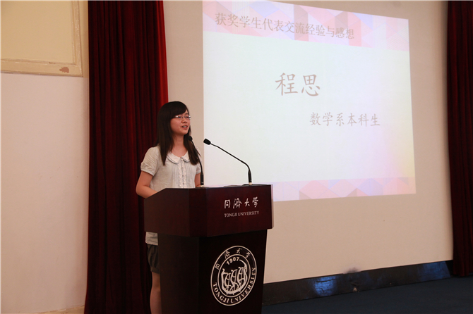 会议对竞赛获奖的研究生和本科生进行了表彰。来自电子与信息工程学院的研究生学生代表徐鹏程同学和来自数学系的本科学生代表程思同学作了发言,交流了获奖感想与经验。
