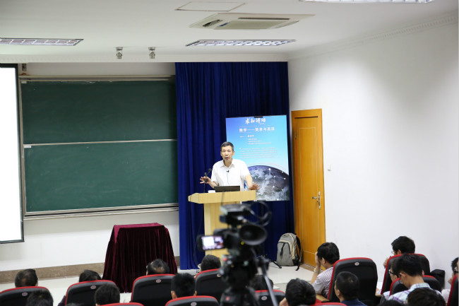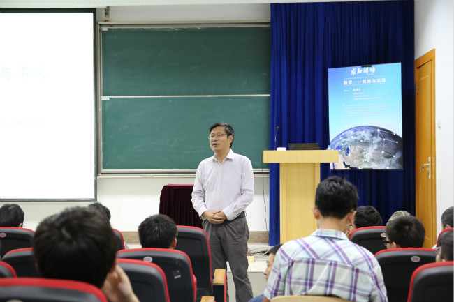 数学系第九届求知讲坛在四平路校区致远楼成功举行。本次求知讲坛邀请中国科学院院士、中国科学院大学副校长席南华院士作题为《数学——简单与高深》的演讲。数学系党委书记李少华教授、数学系系主任边保军教授、副系主任殷俊锋教授以及来自数学系的百余名师生聆听了讲座。