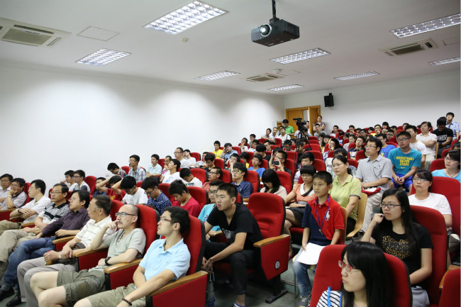 同学们认真地聆听了席教授的讲座,讲座结束后同学们踊跃提问,争相举手,席院士耐心地回答。一位低年级的同学问席院士应该如何学好大学数学,一位高年级同学询问数学与哲学之间的关系,席院士都认真解答,还谦虚地回顾了当初的求学之路的坎坷,并鼓励学生“书一本一本地看,把每本书都看明白”,“未必一定要有大追求,做好每一步,一步一步往下走”等等,在座的学生都受益匪浅。最终,在全体师生的热烈掌声下,第九届求知论坛圆满落幕。