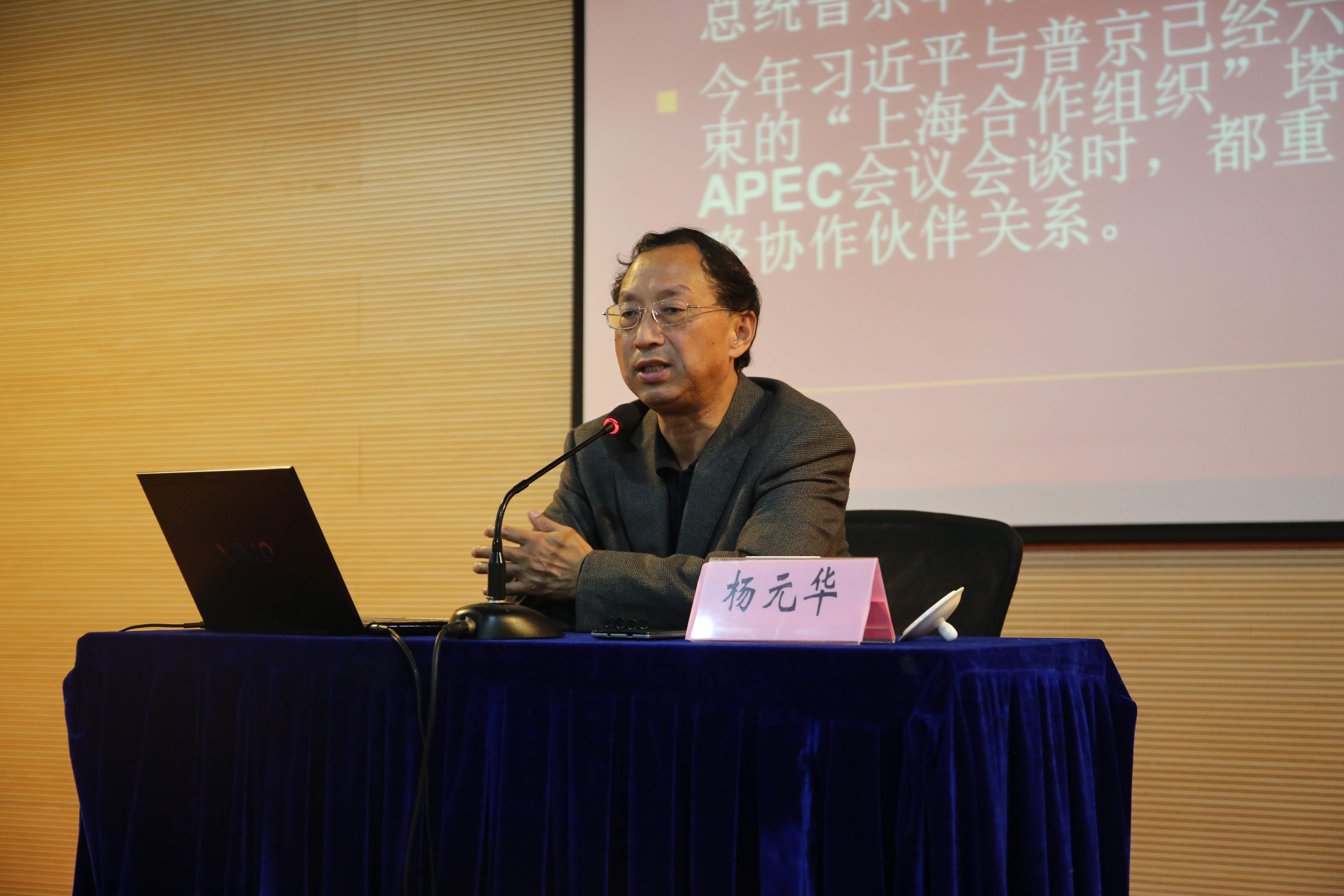 11月25日下午13:30,上海市市委党校的杨元华教授受邀为我校数学系师生做了题为《当前国际形势与中国外交》的报告。报告在a漫