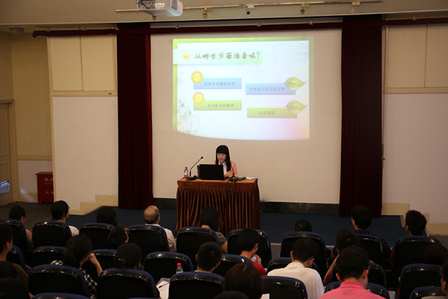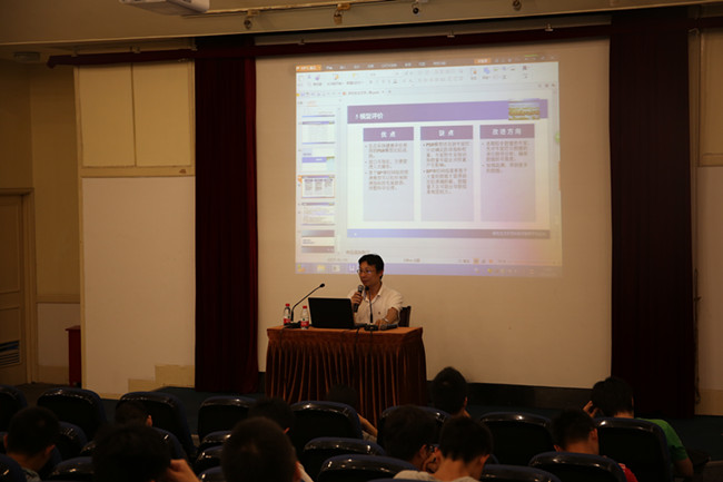紧接着,张华隆老师做建模竞赛主题报告,他结合自己多年从事建模竞赛工作的经历,首先回顾了研究生数学建模竞赛的历史,然后介绍了阅卷过程及老师的心理,指出“不要迷信评委,但是要相信评委”,关于论文写作,张老师以赛题“汶川地震唐家山堰塞湖泄洪问题”及“乘用车物流运输计划问题”为例,从问题的分析、评分细则、优秀论文各部分写作要点等方面详尽讲述如何写一篇高质量数模竞赛论文,最后他提出通过阅读分析他人论文来摸索写作论文的方法。张老师就建模竞赛问题的精彩报告在师生的掌声中结束。