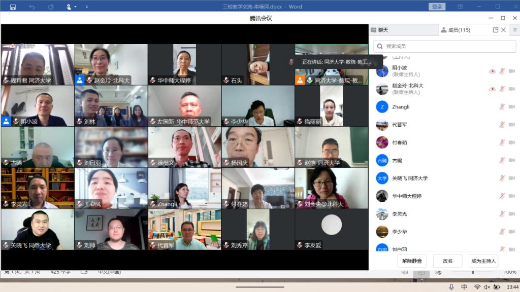 4月18日下午,我院联合华中师范大学数学与统计学学院和北京科技大学数理学院的教工党支部举办数学课程教学创新交流会。本次活动以在线形式开展,分别邀请了来自三所高校的教师做主题报告,共有一百三十余位教师参与了本次研讨交流。