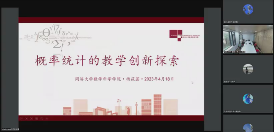 我院杨筱菡副教授以“概率统计的教学创新探索”为题作报告。她从课程概述、学情分析、教学设计、思政设计、效果与评价、示范推广辐射六个方面介绍了参与建设的国家精品在线开放课程、首批国家级线上一流本科课程《概率论与数理统计》的教学创新探索,详述了根据学生差异化的知识结构体系,基于“优学-启思-引行-领悟-拓展”的思路开展的教学创新设计与实践,以及虚拟仿真平台、数据实验平台建设、课程思政等特色创新。