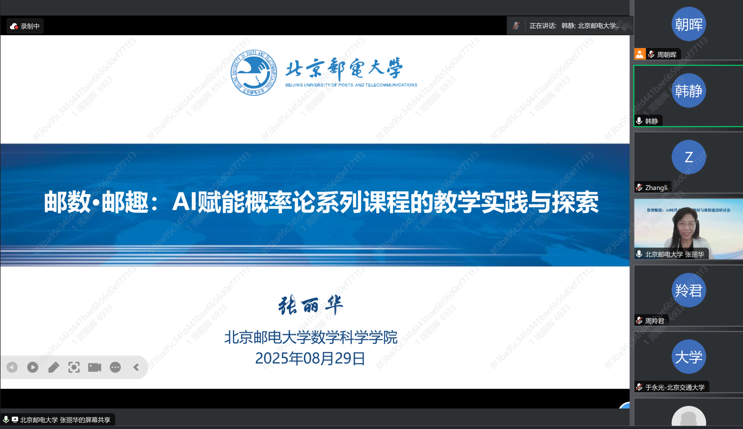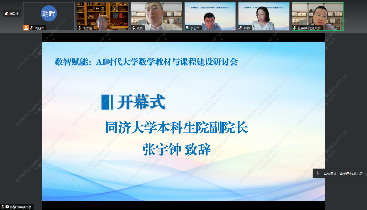 本科生院副院长张宇钟教授出席会议并致辞。会议聚焦人工智能在大学数学教材建设与课程改革中的应用,深入探讨大学数学教育的创新路径与发展方向。虚拟教研室成员、a漫
