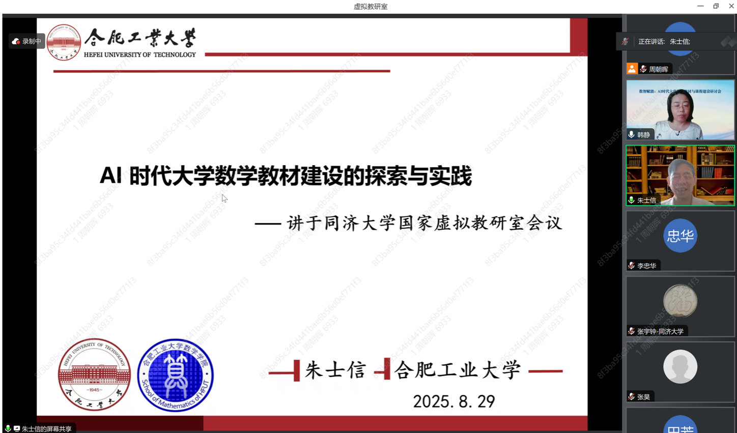 8月29日上午,数智赋能:AI时代大学数学教材与课程建设研讨会以线上形式通过虚拟教研室平台顺利举行。本次会议由a漫