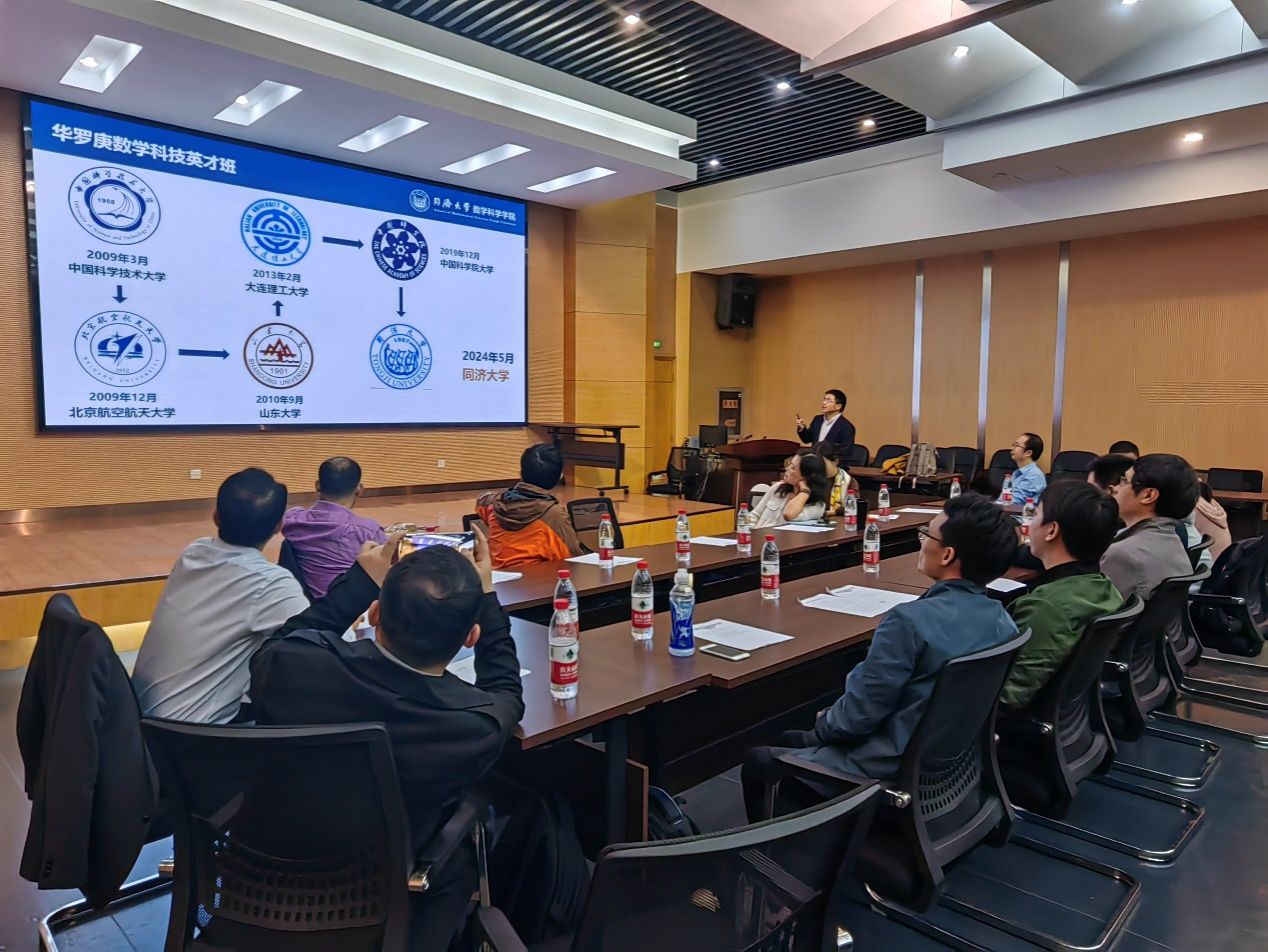 紧接着,研学团于华罗庚纪念馆一楼会议厅举行华罗庚数学科技英才班建设推进会暨青年教师参与数学拔尖人才和卓越工程科技人才培养新模式研讨会。会议由杨亦挺副书记主持。李忠华副院长首先做华罗庚班建设主题报告。忠华院长从首届华罗庚班生源来源情况及学生动态管理机制设计、“开设荣誉课程、加强科研训练、实现本研贯通、增强国际视野、注重创新项目”五位一体的培养方案、核心课程师资队伍建设等方面详细阐述了依托华班建设具有同济特色的一流拔尖创新人才的人才培养探索。