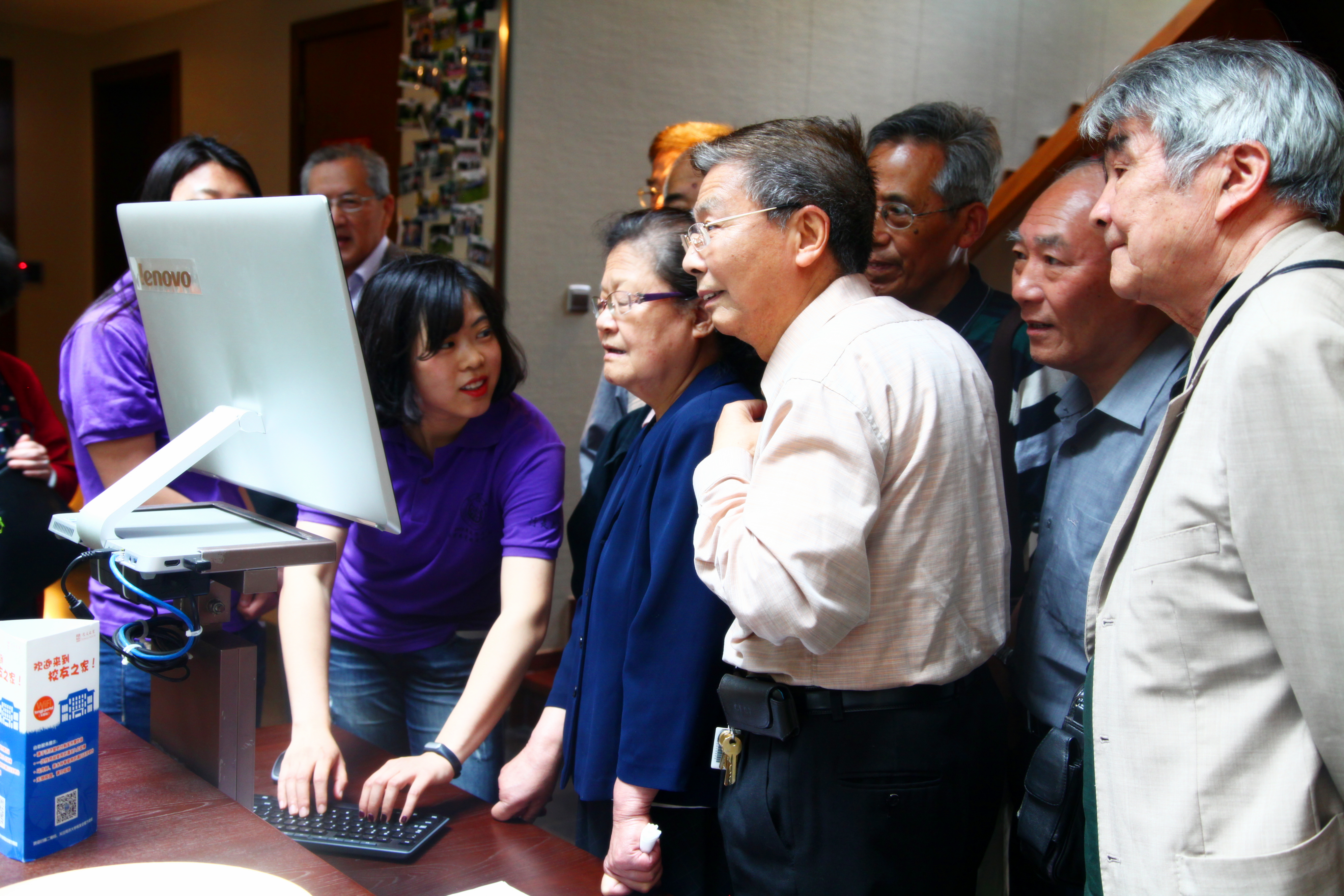 当日上午,校友们在志愿者的引导下参观了校友之家—旭日楼,并在校史馆重温了母校的百年历史。在校友之家,校友们寻找当年入学时的照片,看着照片上的青春面孔,两鬓已经斑白的校友们不禁感慨时间的匆匆,说起了当年在同济读书期间的种种难忘经历。校友们提议登高看看同济,在了解校友们的意愿后,志愿者随即与图书馆工作人员联系参观事宜。据校友回忆:当年校友们也为a漫