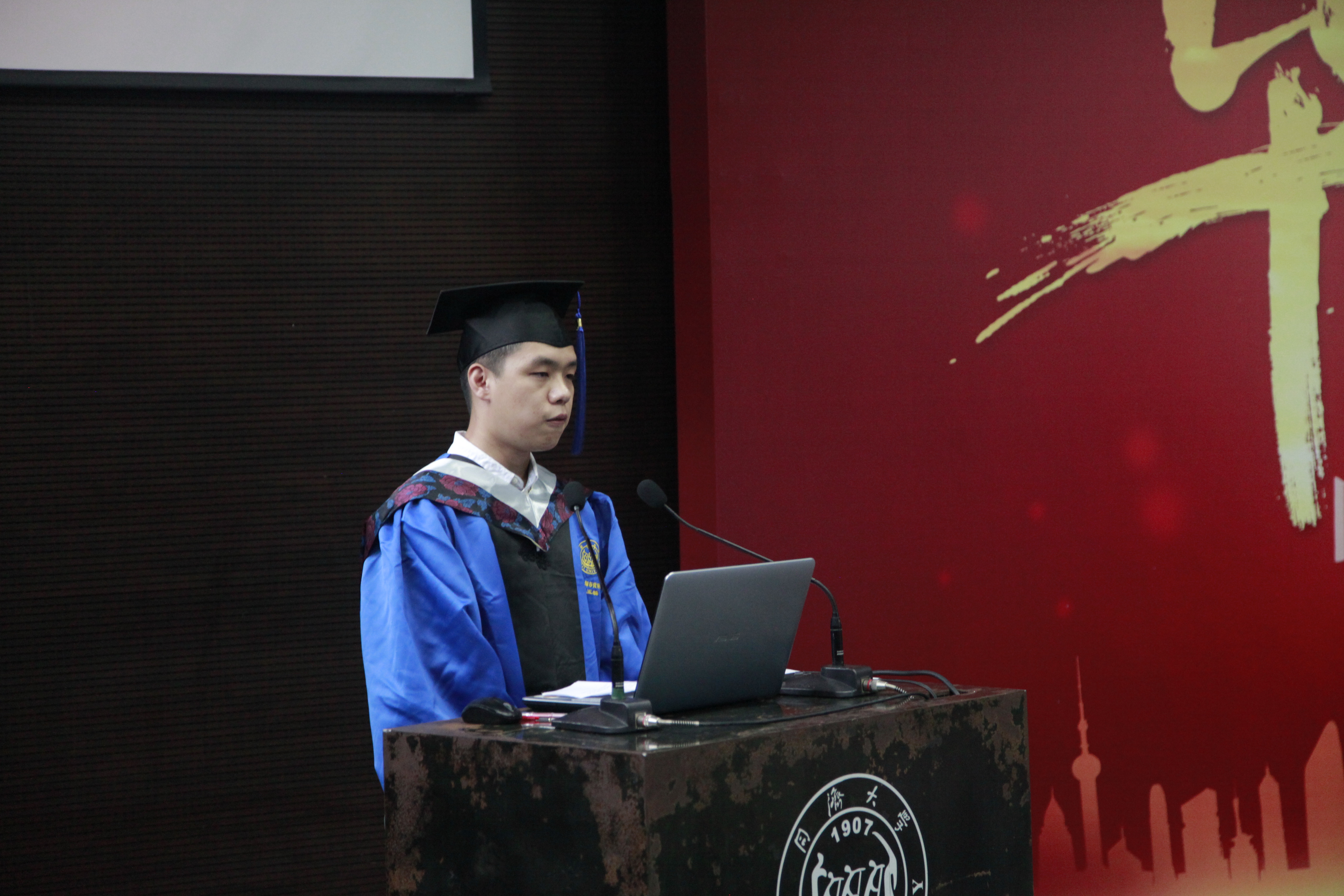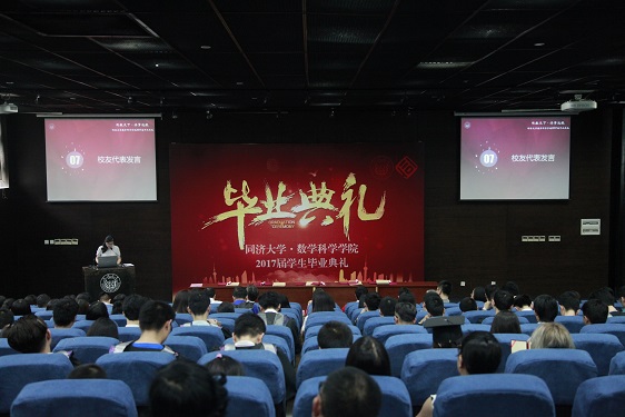 上海市优秀毕业生、2017届研究生蒋玉麟作为毕业生代表发言,他回忆了在同济数学求学的点点滴滴,并向学院、老师、同窗好友表达了衷心的感谢。