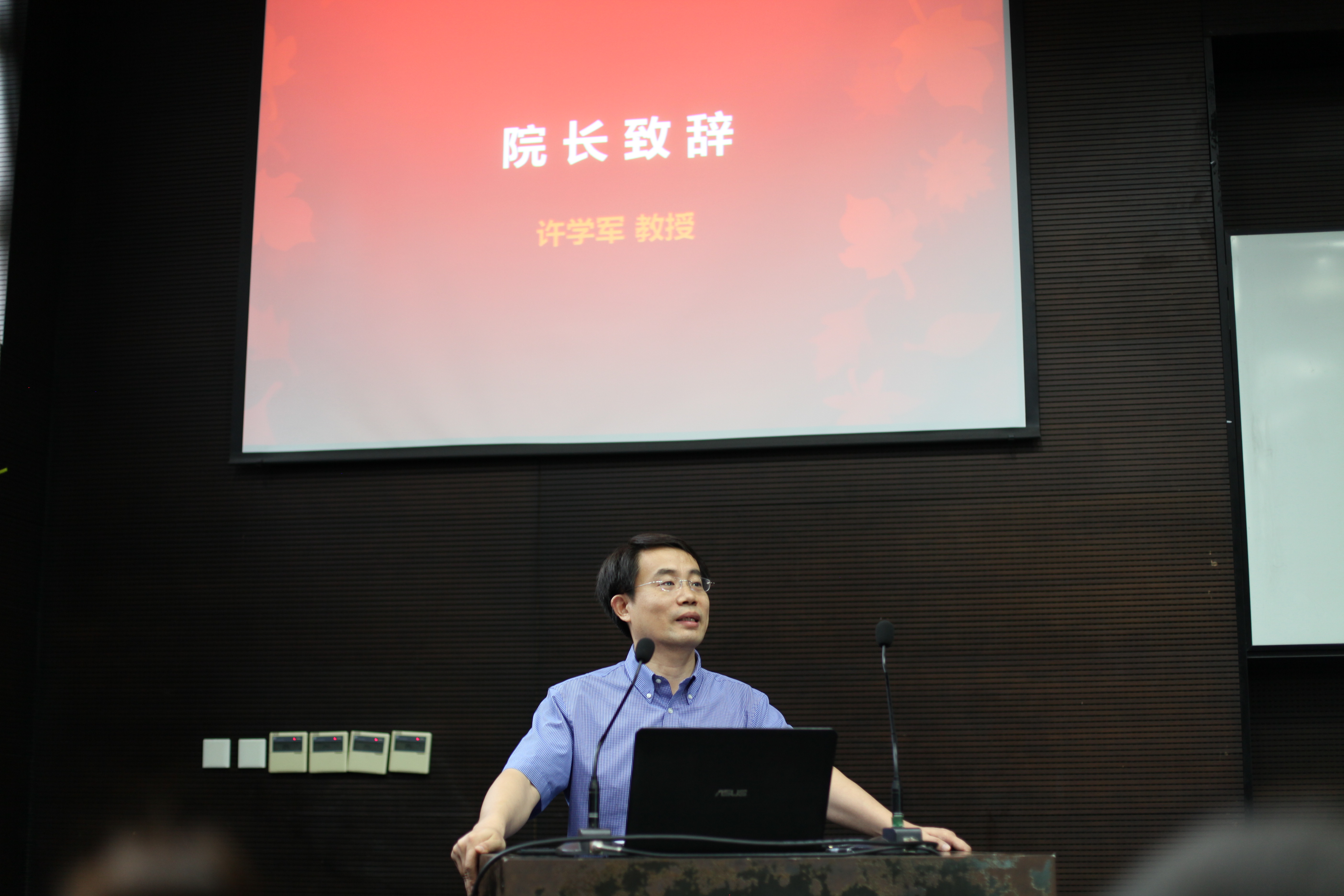院长许学军教授代表学院致欢迎辞。他首先对所有新生家长给予学院的支持与信任表示感谢。他强调,无论是从世界科研团队的发展现状还是从学科本身的特点来看,数学都是一门非常重要的学科。其次,许院长指出选择a漫 是明智而英明的决定,他分别从师资力量、学科建设、辅导员队伍发展等方面简要介绍了学院的人才培养亮点。最后,许院长指出学好数学不容易,强调了扎实基础课程学习的重要性,提醒家长时刻关心孩子的学习状态。