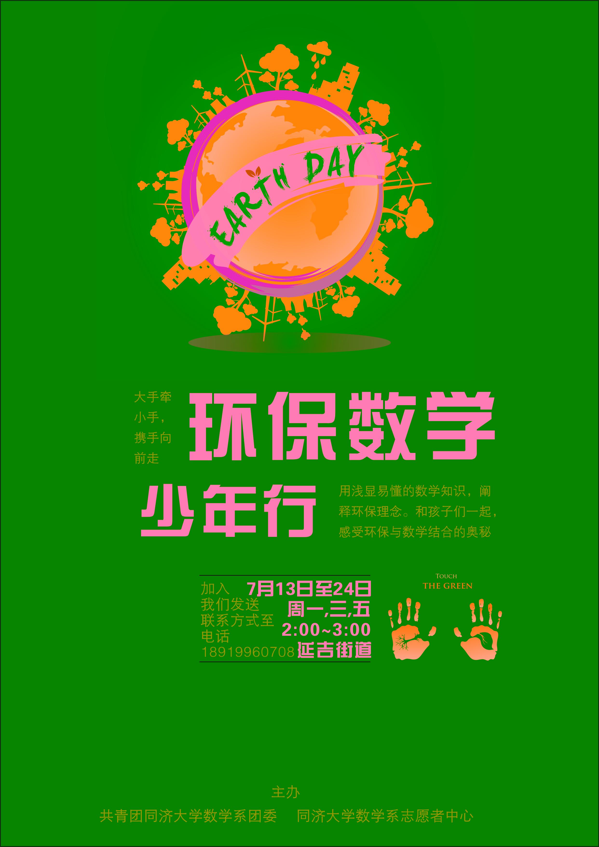 请编辑短信“环保数学志愿者+姓名+学号+联系方式+任何你想说的话”发送到18919960708,有热情的你一定可以通过我们的选拔,期待你的加入!报名截止时间为7月8日